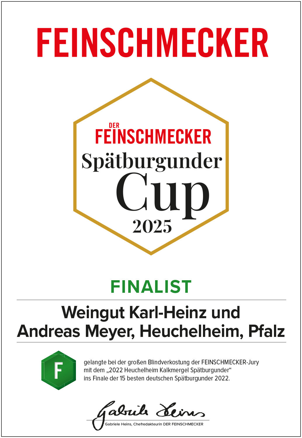 Beim Spätburgunder Cup 2025 erzielte unser Heuchelheimer Spätburgunder Kalkmergel 2022 den 4. Platz.